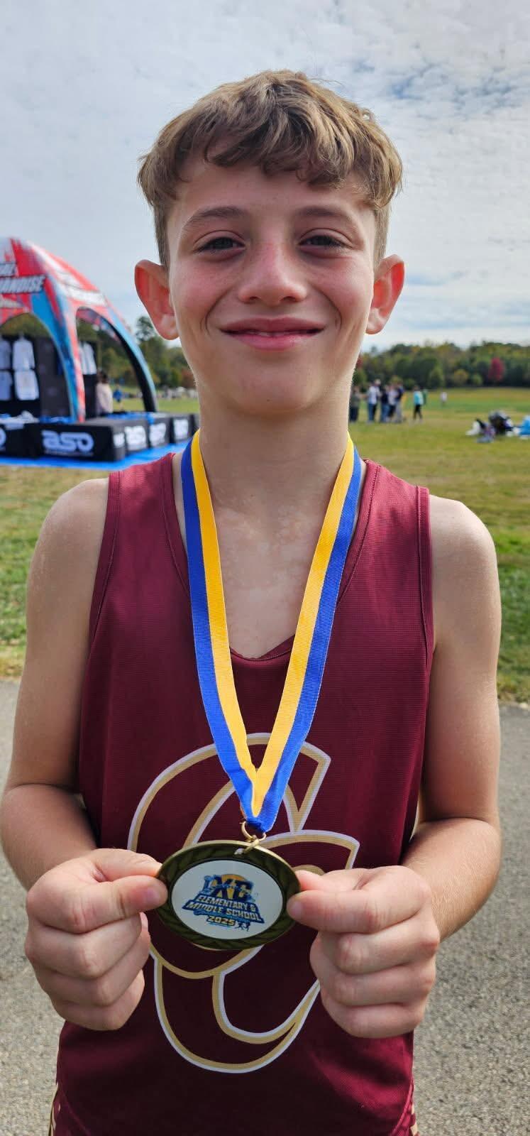 5th Grader Carson Cobb earned 1st place at the State Cross Country Elementary Race 🏁! Way to go Carson!! We are so proud of you!💜